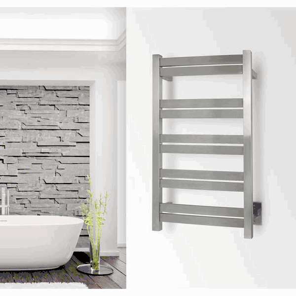 Sometimes huge performance comes in small packages, which is perfectly embodied by the Grande 10 towel warmer from Warmlyyours. The compact profile of this model means it can be installed in a wide variety of locations, while its heat output of 460 BTUs per hour stands toe-to-toe with nearly any electric towel warmer on the market. The broad bars of the Grande 10 offer extra surface area for expedient heating and the design incorporates a spacing that allows the top pair of bars to perfectly accommodate hand towels. The Grande 10 serves as a visually striking compliment to the lighter colors used in contemporary bathroom design. This model comes with built-in TempSmart protection to prevent the unit from overheating.